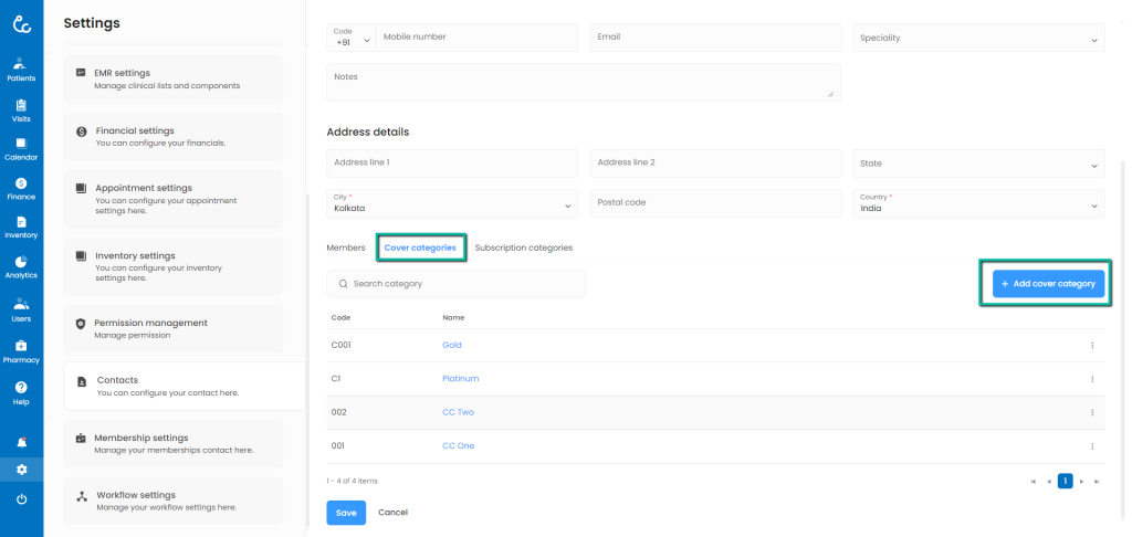 - Fill the required information like code and name of the cover category.