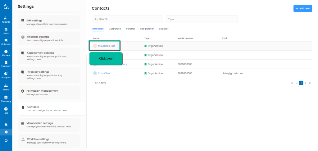 - Click on the name of the insurance or corporate company.