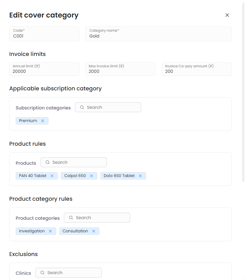 - You can also set some exception rules based on the cover plan. Click on save after filling up all the required information.