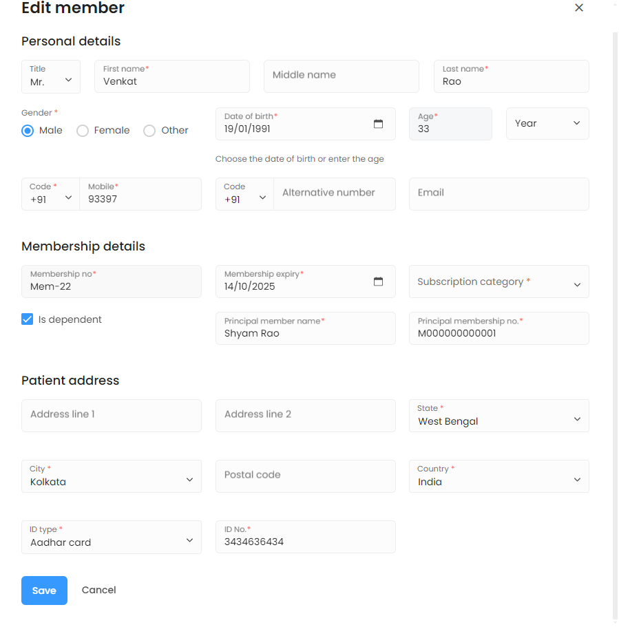 - You can associate this member to the patient at the time of patient registration. To know more you can read this article – How to add a payor to a patient – Help