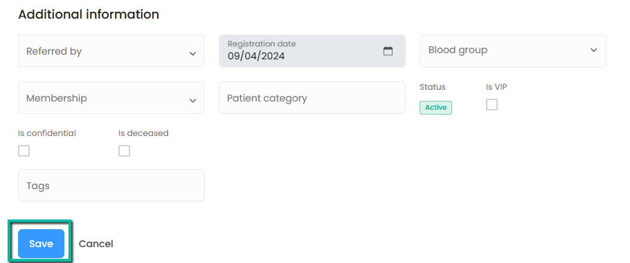 - You can update patient information by clicking on “Edit” button from Toolbar and update any detail against the selected patient except for the registration date.
