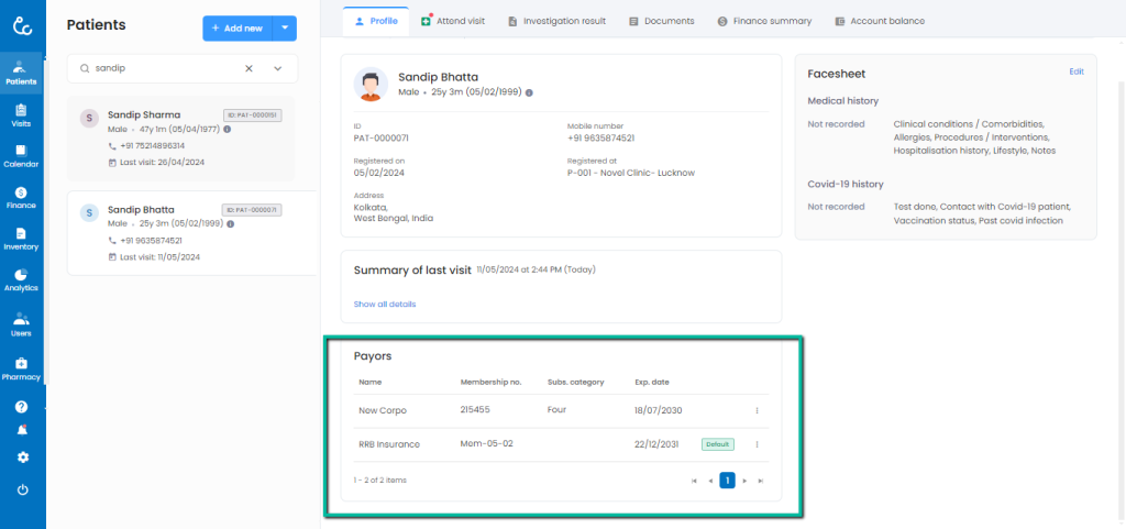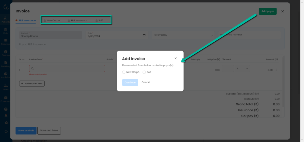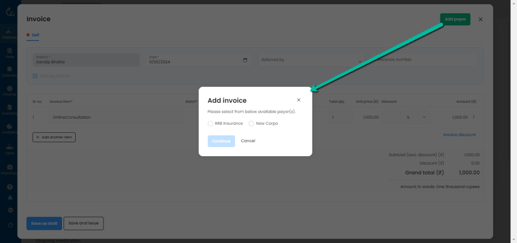 - To know how to add a payor to a patient, you can refer patient help section –https://help.easyclinic.io/docs/how-to-add-a-payor-to-a-patient/