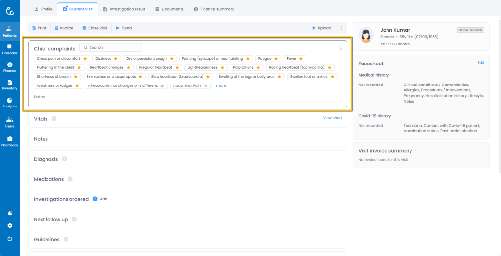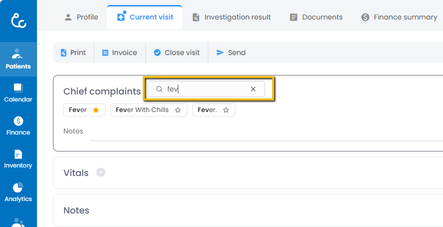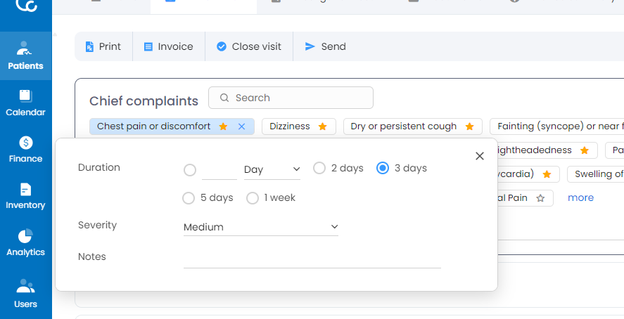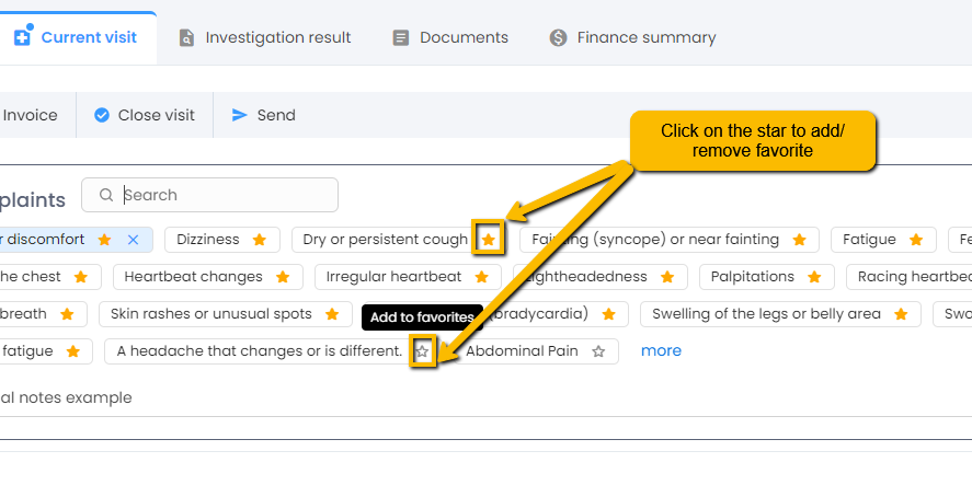 - You can add any chief complaint to favorite or remove any chief complaint from favorites using the favorite button beside the name of chief complaint.