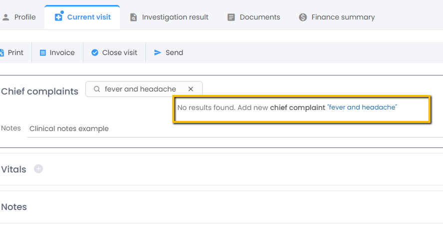 - You can add a new chief complaint by clicking on the name.